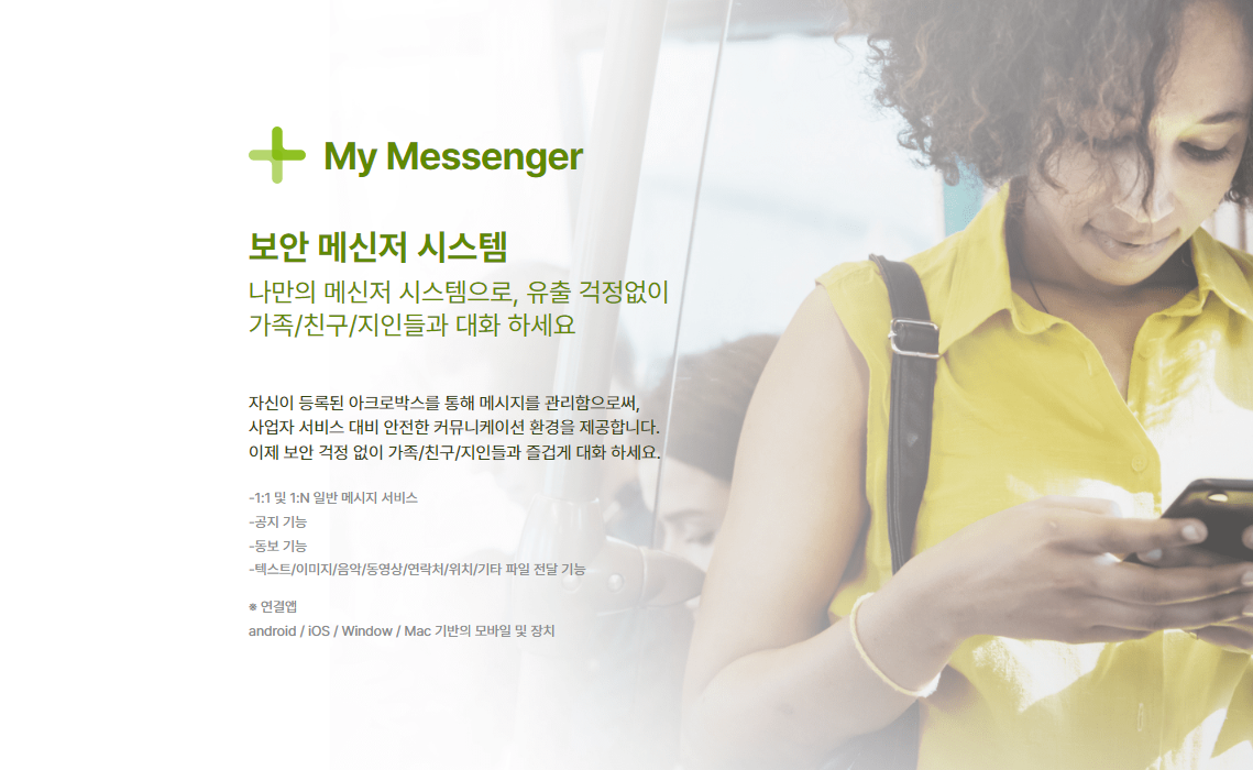 자신이 등록된 아크로박스를 통해 메시지를 관리함으로써, 사업자 서비스 대비 안전한 커뮤니케이션 환경을 제공합니다. 이제 보안 걱정 없이 가족/친구/지인들과 즐겁게 대화하세요.